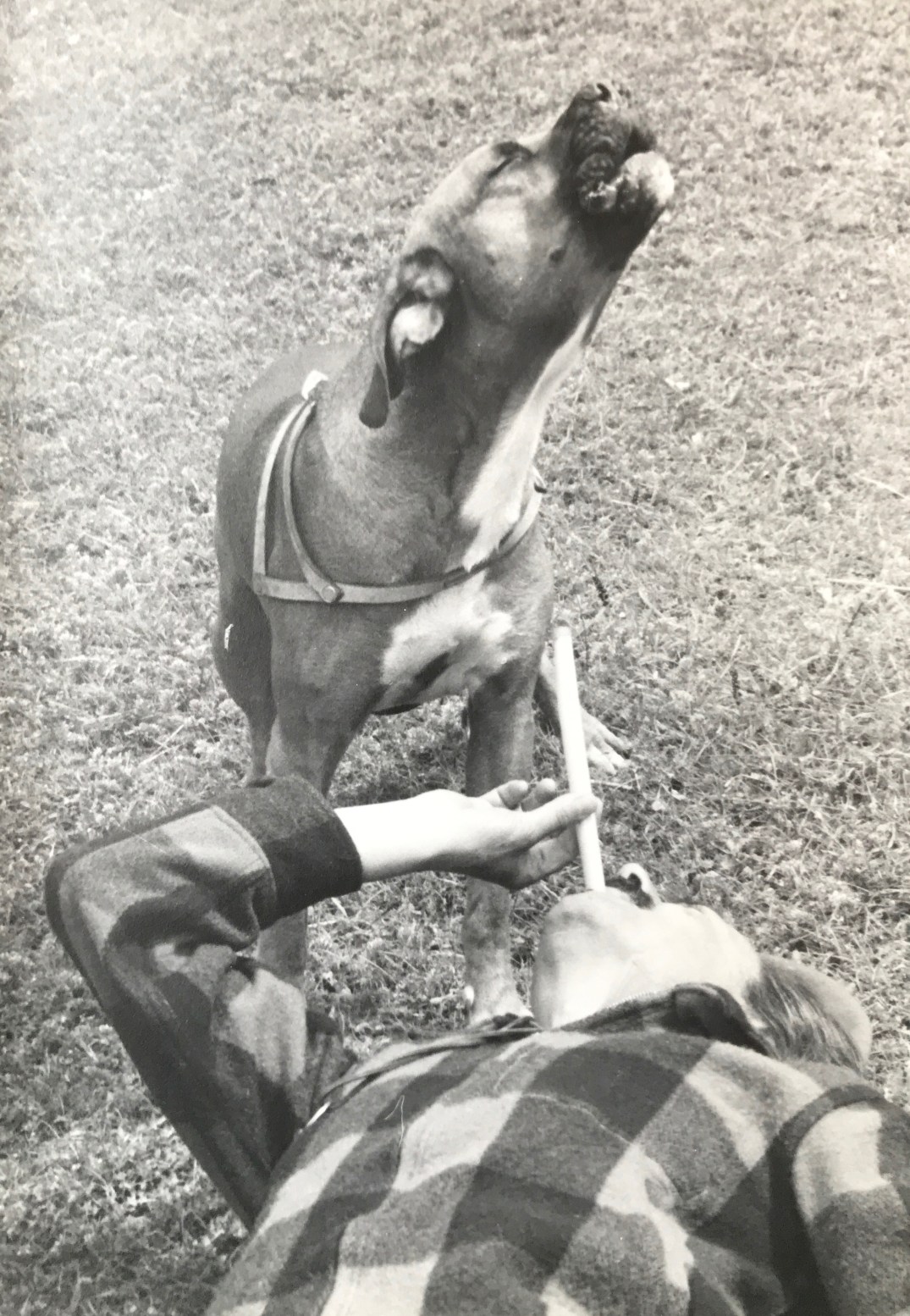 Duque was our first and only dog; he was a cross between Boxer and something else we never knew. At the time the tradition said boxers, as well as some other breeds had to have their tail and ears cut. Duque had his tail cut, but somehow his ears were not touched and were longish and had a soft feeling like suede.