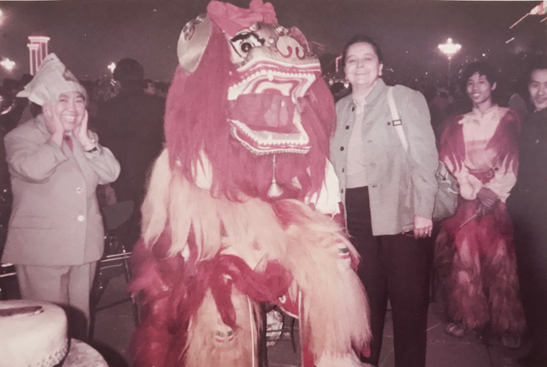 El cielo todo se cubría de color, mas luminoso que si el sol hubiera salido por fracciones de segundo, como si el sol pestañeara y dejara salir toda su luz, luz por todas partes, de colores, en forma de estrellas, como lluvia de luz, luz formando figuras en el cielo, dragones y perros chinos, enormes, gigantescos crisantemos y como remate, como los muchachos están divertidos de ver nuestras reacciones ante ese despliegue de luz y color, tanto como nosotros las de ellos, esto aumentaba la diversión. Había grupos de jóvenes representando pasajes de la famosa opera de Pekín, otros bailando danzas tradicionales, antiguas y no tanto. Era el Zócalo de la ciudad de México en 15 de septiembre pero mucho mas grande, con muchos miles de personas pues se dice que Tien An Meng es la plaza mas grande del mundo y en caso de apuros cabe hasta medio millón de personas. Esa noche tal vez no éramos medio millón pero nos divertimos como si lo fuéramos. Así la fiesta, la verbena como cualquier fiesta animada continuó hasta entrado el día siguiente, siempre con ese espíritu de alegría contagiosa. Los jóvenes son jóvenes en cualquier parte del mundo y siempre pueden divertirse sanamente. Así terminó la fiesta de cumpleaños as grande, rumbosa, larga y esperada a que yo haya asistido.